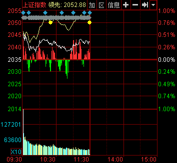 新華網消息 周一滬深股指小幅高開而后維持小幅震蕩,早盤兩市成交量略放大,創(chuàng)業(yè)板指數漲幅超過1%,表現強于其他主要指數。截至午盤,滬指報2041.94點,上漲7.37點,漲幅0.36%,成交343.02億元;深成指報7271.70點,上漲30.78點,漲幅0.43%,成交557.13億元;創(chuàng)業(yè)板指報1319.09點,上漲23.09點,漲幅1.78%,成交164.64億元。