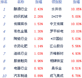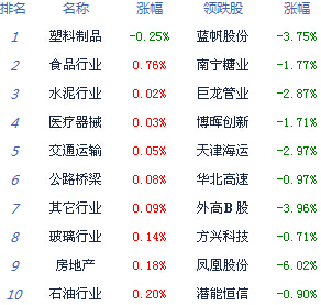 A股市場板塊及個股漲跌幅排行