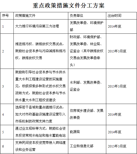。ㄎ澹┩苿(dòng)環(huán)境污染治理市場(chǎng)化。在電力、鋼鐵等重點(diǎn)行業(yè)以及開(kāi)發(fā)區(qū)(工業(yè)園區(qū))污染治理等領(lǐng)域,大力推行環(huán)境污染第三方治理,通過(guò)委托治理服務(wù)、托管運(yùn)營(yíng)服務(wù)等方式,由排污企業(yè)付費(fèi)購(gòu)買專業(yè)環(huán)境服務(wù)公司的治污減排服務(wù),提高污染治理的產(chǎn)業(yè)化、專業(yè)化程度。穩(wěn)妥推進(jìn)政府向社會(huì)購(gòu)買環(huán)境監(jiān)測(cè)服務(wù)。建立重點(diǎn)行業(yè)第三方治污企業(yè)推薦制度。