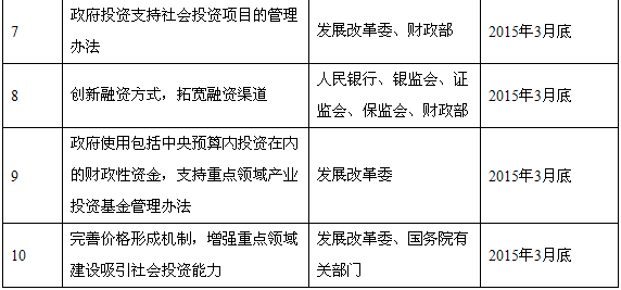 創(chuàng)新重點(diǎn)領(lǐng)域投融資機(jī)制對(duì)穩(wěn)增長(zhǎng)、促改革、調(diào)結(jié)構(gòu)、惠民生具有重要作用。各地區(qū)、各有關(guān)部門要從大局出發(fā),進(jìn)一步提高認(rèn)識(shí),加強(qiáng)組織領(lǐng)導(dǎo),健全工作機(jī)制,協(xié)調(diào)推動(dòng)重點(diǎn)領(lǐng)域投融資機(jī)制創(chuàng)新。各地政府要結(jié)合本地實(shí)際,抓緊制定具體實(shí)施細(xì)則,確保各項(xiàng)措施落到實(shí)處。國(guó)務(wù)院各有關(guān)部門要嚴(yán)格按照分工,抓緊制定相關(guān)配套措施,加快重點(diǎn)領(lǐng)域建設(shè),同時(shí)要加強(qiáng)宣傳解讀,讓社會(huì)資本了解參與方式、運(yùn)營(yíng)方式、盈利模式、投資回報(bào)等相關(guān)政策,進(jìn)一步穩(wěn)定市場(chǎng)預(yù)期,充分調(diào)動(dòng)社會(huì)投資積極性,切實(shí)發(fā)揮好投資對(duì)經(jīng)濟(jì)增長(zhǎng)的關(guān)鍵作用。發(fā)展改革委要會(huì)同有關(guān)部門加強(qiáng)對(duì)本指導(dǎo)意見(jiàn)落實(shí)情況的督促檢查,重大問(wèn)題及時(shí)向國(guó)務(wù)院報(bào)告。