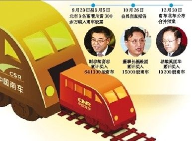 中國(guó)南北車再次搶占各大財(cái)經(jīng)媒體頭條,一是兩只股票連續(xù)五連板大放異彩,引領(lǐng)高鐵板塊再成最強(qiáng)音;二是高管及其家屬購(gòu)買(mǎi)自家及對(duì)方股票的消息被曝光,投資者不免議論是非—