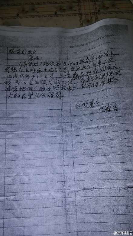 [武漢#保潔員因扣400元服毒#自殺] 41歲艾春香在佛祖嶺街道辦從事保潔工作,4日離家后未歸。5日被發(fā)現(xiàn),身邊有2個農(nóng)藥瓶,警方認(rèn)定其服毒自殺。遺書:“這兩個月工資也沒有多少,上次單位扣我400元,我心里有很大的打急(擊),我真的想走絕路。”街道辦稱正在配合警方調(diào)查中。京華記者武紅利 楊卿