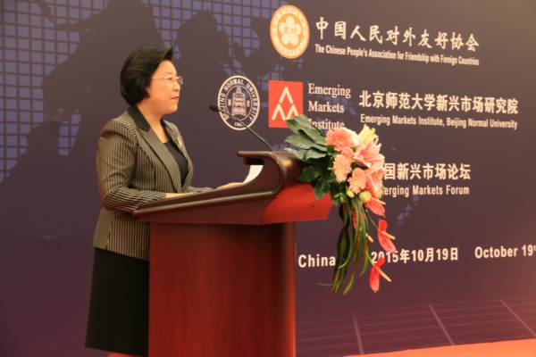 央廣網(wǎng)北京10月19日消息 “2015北京新興市場(chǎng)論壇”于10月19日在人民大會(huì)堂舉行。5位外國(guó)前政要、來(lái)自14個(gè)國(guó)家的20位外國(guó)專(zhuān)家學(xué)者、100余位中國(guó)學(xué)者和企業(yè)家參加會(huì)議。外國(guó)專(zhuān)家學(xué)者包括了世界銀行、國(guó)際貨幣基金組織(IMF)、地區(qū)銀行的現(xiàn)任或前任行長(zhǎng)和高級(jí)官員。本次論壇由中國(guó)人民對(duì)外友好協(xié)會(huì)、北京師范大學(xué)新興市場(chǎng)研究院、美國(guó)新興市場(chǎng)論壇共同舉辦!2015北京新興市場(chǎng)論壇”的議題為“中國(guó)與新興市場(chǎng)”。