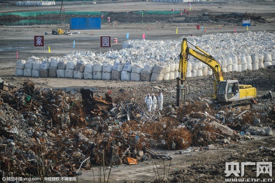 天津,在爆炸核心區(qū),工程人員正在清理現(xiàn)場(chǎng)的建筑垃圾。