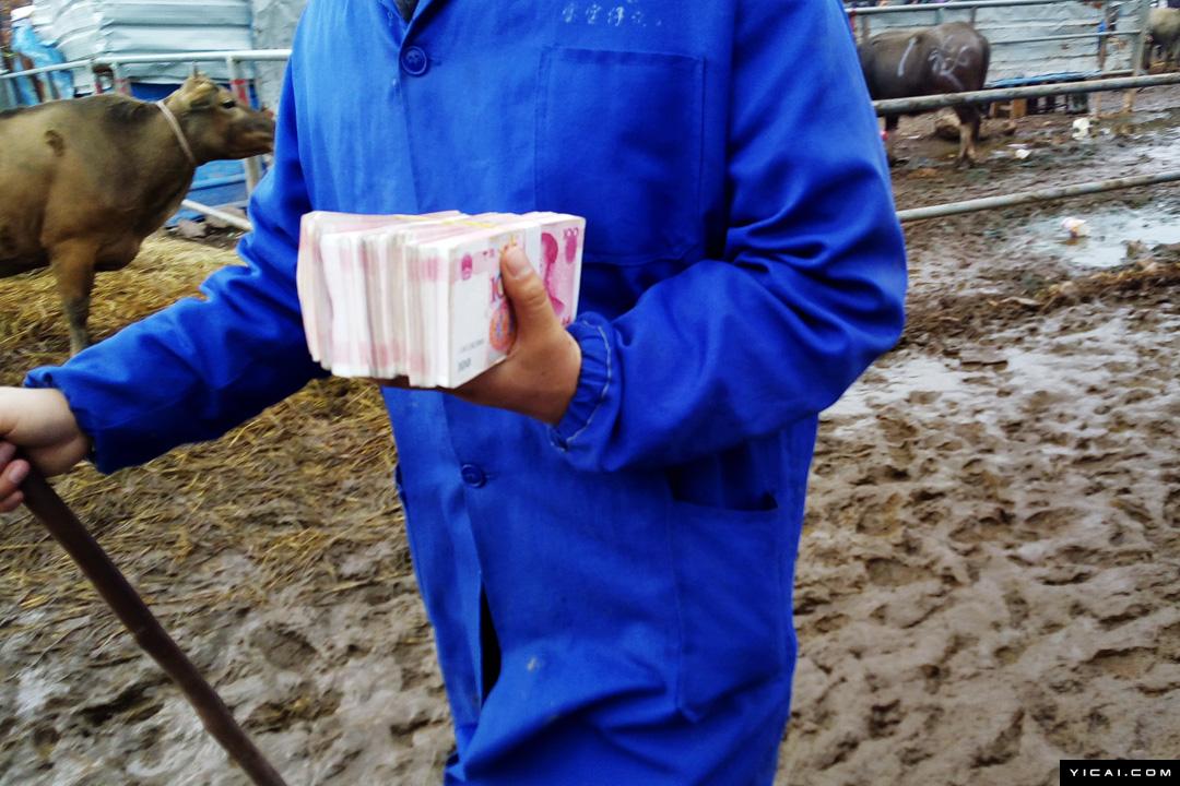 金華牛市有“華東第一牛市”的稱(chēng)號(hào),長(zhǎng)三角地區(qū)的牛,多是這里交易。通常一個(gè)交易日,幾千頭牛。在牛市交易過(guò)程中,活躍著一個(gè)特殊的職業(yè)群體——牛經(jīng)紀(jì)人,一頭牛多重,值多少錢(qián)?買(mǎi)賣(mài)雙方不是靠秤,而是靠經(jīng)紀(jì)人來(lái)估。圖為一名牛市經(jīng)紀(jì)人手持大額現(xiàn)鈔,牛市交易雙方基本依靠現(xiàn)金。",
