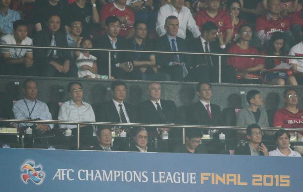 2014年8月27日,亞冠1/4決賽次回合廣州恒大VS西悉尼流浪者。馬云、許家印看球。 視覺中國 資料