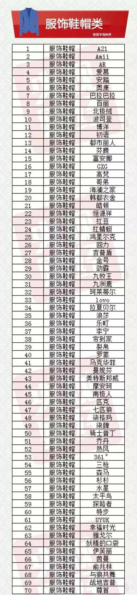 服飾鞋帽類品牌榜 央視財經(jīng) 供圖
