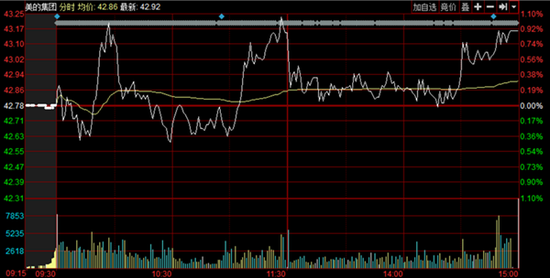 今日,美的集團早盤迅速拉升一度漲1%,隨后有所下挫,臨近午盤時一度拉升至當(dāng)日最高點。該消息傳出后快速下行,保持低位徘徊,截至收盤美的集團漲0.89%,報43.16元/股。