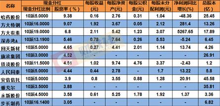 2017年度,在目前公布分紅情況的275家公司中,已經(jīng)有12家公司的股息率超過(guò)3%。其中,哈藥股份以9.38%的股息率居首,方大特鋼以9.07%的股息率次之,方大炭素則以6.8%的股息率排在第三。