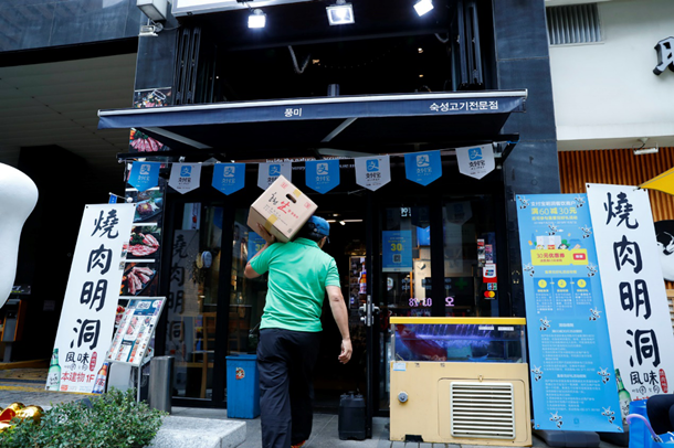 韓國明洞一家烤肉店的老板樸女士表示,中國國慶假期期間,自己的生意比平時(shí)好了六七倍!白詮慕尤肓酥Ц秾氁院螅瑏砦疫@里的中國游客幾乎全都用手機(jī)付款。假期結(jié)伴旅行的朋友很多,人均消費(fèi)也比平日里高不少。”