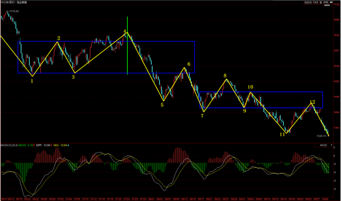 而對(duì)于創(chuàng)業(yè)板指,從指數(shù)60分鐘圖來看,目前依然是12號(hào)點(diǎn)向下調(diào)整的一筆中,如果12號(hào)點(diǎn)向下一筆調(diào)整的力度比不過4-5一筆力度,那么就有可能形成中樞背馳的一買,這種一買有可能形成中期低點(diǎn),這值得我們重點(diǎn)關(guān)注,同時(shí)也可以通過5分鐘二買或者60分鐘驗(yàn)證來把握。