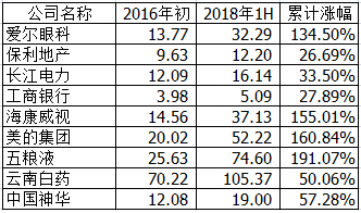 通過數(shù)據(jù)分析可以發(fā)現(xiàn),在過去的兩年多時間里,滬綜指從2016年初的2737.6點,到2018年6月末的2847.42點,幾乎沒有任何漲幅,從整體來看A股的投資者并未能從股票投資中分享中國經(jīng)濟發(fā)展的碩果;但其實這只是表象,拋開這些高溢價、但質(zhì)量底下的“概念股”,榮獲了“九鼎獎”的9家上市公司股價表現(xiàn)則明顯更加強勁,與市場整體形成了鮮明對照: