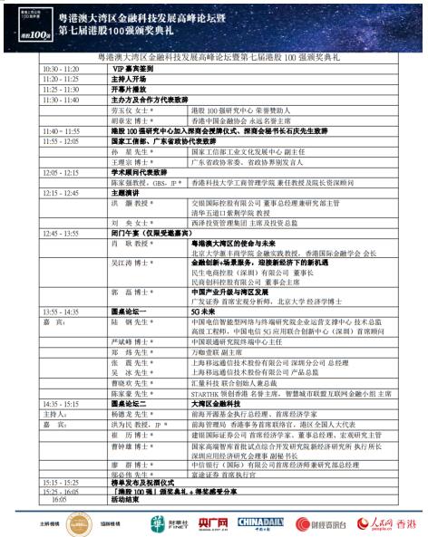各界杰出人士共聚一堂,國家工信部領(lǐng)導(dǎo)代表國家工信部工業(yè)文化發(fā)展中心副主任孫星先生及港股100強(qiáng)研究中心榮譽(yù)贊助人勞玉儀女士、香港中國金融協(xié)會(huì)永遠(yuǎn)名譽(yù)主席胡章宏博士、廣東省政協(xié)常委兼省政協(xié)界別發(fā)言人王理宗博士、學(xué)術(shù)顧問代表香港科技大學(xué)工商管理學(xué)院兼任教授及院長資深顧問陳家強(qiáng)教授將為本次活動(dòng)致辭,交銀國際控股有限公司董事總經(jīng)理兼研究部主管清華五道口紫荊學(xué)院教授洪灝先生、西澤投資管理集團(tuán)主席及投資總監(jiān)劉央女士將為本次峰會(huì)進(jìn)行演講。