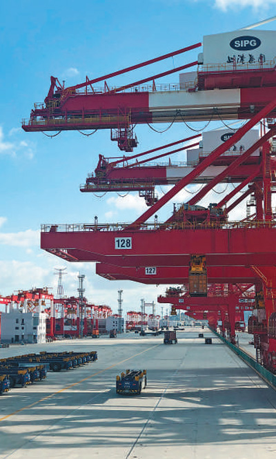 圖為上海洋山深水港四期自動化碼頭。2018年碼頭吞吐量實現(xiàn)201萬標準箱。