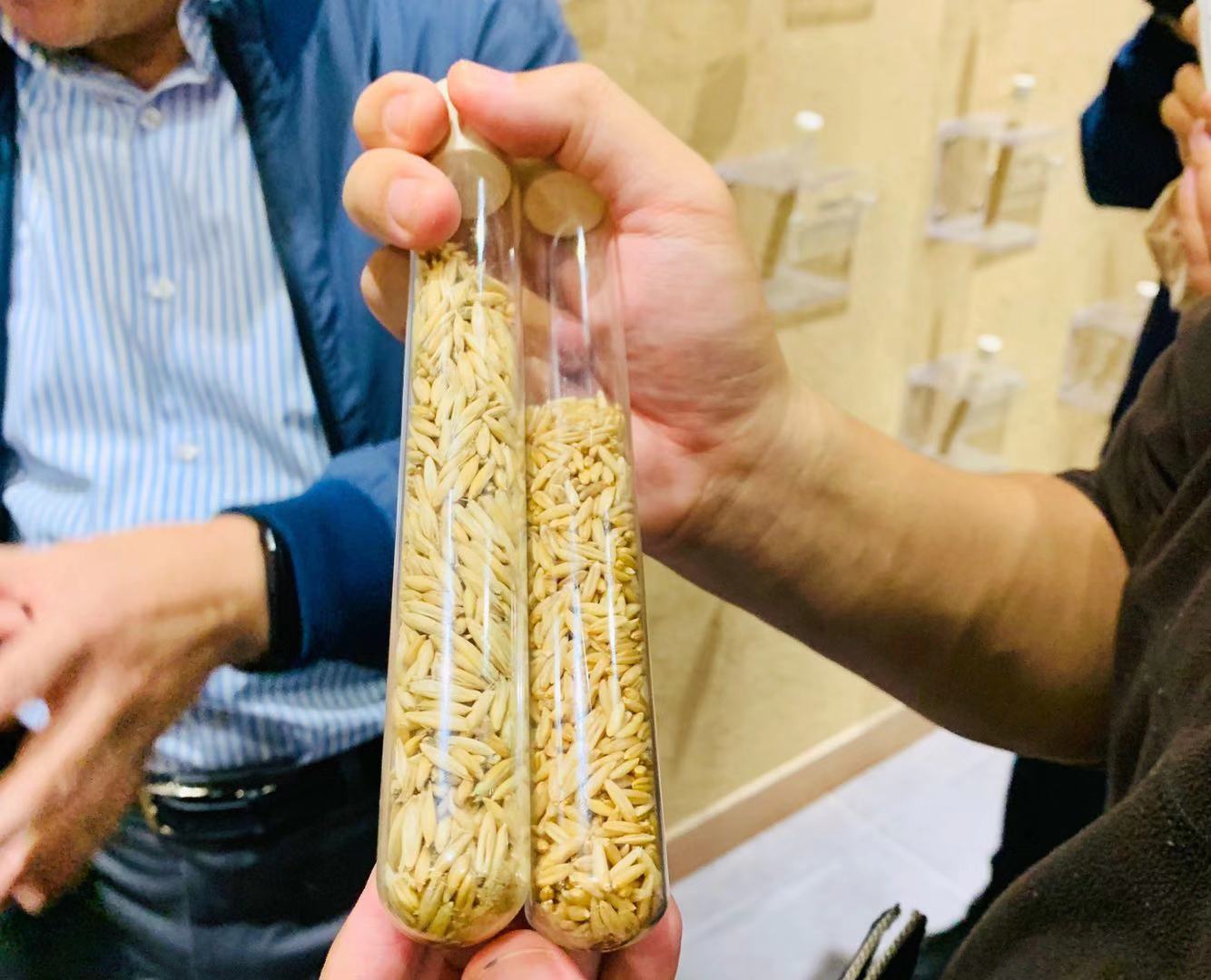 陰山優(yōu)麥公司工作人員向記者展示燕麥種子。(央廣網記者馬文靜 攝)