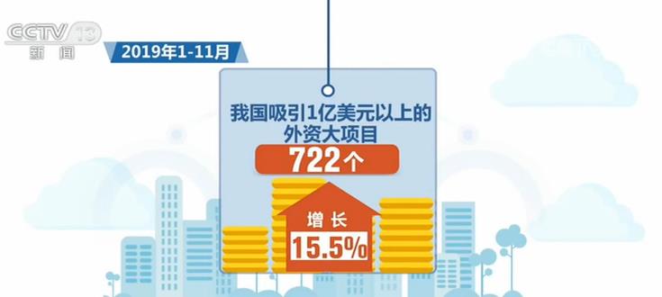 前11個月,我國吸引1億美元以上的外資大項目722個,增長15.5%;“一帶一路”沿線國家、東盟對華投資分別增長23.5%和27.3%。