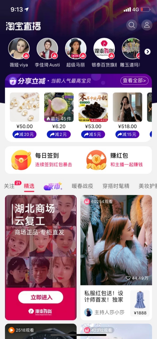 2月18日,淘寶直播開通湖北商場(chǎng)云復(fù)工專場(chǎng)。