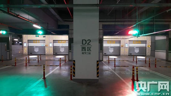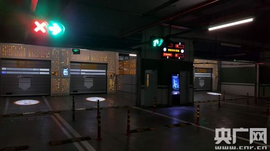 想讓機器幫你停車,要先把車開進泊車口。記者看到,泊車口兩端都有鋁制閘門,樣子就像科幻電影里太空飛船的停機庫。