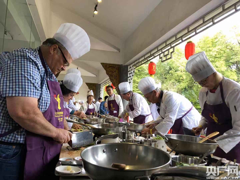 在川菜博物館內(nèi)學習川菜制作的外國游客(中央廣播電視總臺央廣記者 張慧娟 攝)