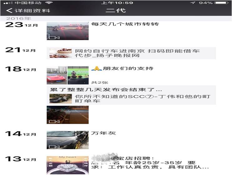 翻開丁偉的朋友圈,此前生活十分富足