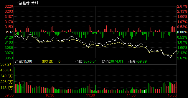 收盤:滬指震蕩下調(diào)跌1.93% 失守3100點(diǎn)