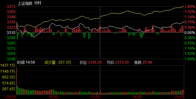 央廣網(wǎng)財(cái)經(jīng)北京3月2日消息 據(jù)經(jīng)濟(jì)之聲《交易實(shí)況》報(bào)道,受上周央行降息和柴靜霧霾紀(jì)錄片的影響,兩市今天高開高走,午后震蕩走高,截至收盤,滬指報(bào)3336.28點(diǎn),上漲25.98點(diǎn),漲幅0.78%,成交4103億元;深成指報(bào)11884.0點(diǎn),上漲126.33點(diǎn),漲幅1.07%,成交3876億元;創(chuàng)業(yè)板指報(bào)1986.99點(diǎn),上漲58.94點(diǎn),漲幅3.06%,成交850.7億元。