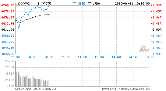 央廣網(wǎng)北京6月1日消息 據(jù)經(jīng)濟(jì)之聲《交易實況》報道,28號的大跌之后,29號是收出了一根上下影線都很長的十字星,周末的消息面還是比較平靜的,今天開盤走勢不錯。周一開盤滬指開盤大幅震蕩,金融股低迷,題材股強(qiáng)勢爆發(fā),醫(yī)療、電力、通信、互聯(lián)網(wǎng)、傳媒概念股漲停潮,截止發(fā)稿滬指漲1.73%,報1690.79點,成交2392億元。