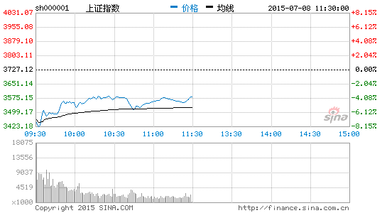 午評:滬指盤中下跌逾8%后探底回升 報(bào)3582點(diǎn)