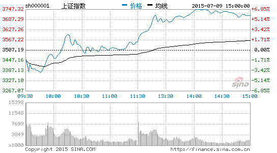 截至收盤,滬指報3709.39點,漲203.08點,漲幅5.79%,成交6733.11億;深成指報11510.34點,上漲469.45點,漲幅4.25%,成交2776億元;創(chuàng)業(yè)板指2435.75點,漲71.70點,漲幅3.03%,成交583.34億。