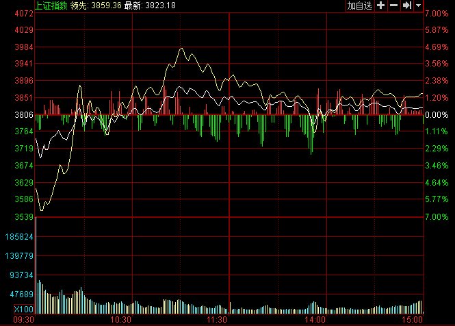 央廣網(wǎng)北京7月16日消息 據(jù)經(jīng)濟(jì)之聲《交易實(shí)況》報(bào)道,周四早盤,滬深兩市雙雙低開,滬指一度跌逾3%失守3700點(diǎn)關(guān)口,最低跌至3688.44點(diǎn)后,探底回升翻紅,之后一路震蕩拉升,臨近午盤,漲幅收窄,午后開盤,滬指呈回落趨勢,后一度在3800點(diǎn)展開紅綠爭奪,盤面上,昨日護(hù)盤英雄石油、銀行等權(quán)重股今日較為低迷威風(fēng)不在,創(chuàng)業(yè)板最低跌近6%到漲逾3%,振幅達(dá)10%,兩市逾1500股上漲,逾百股漲停,臨近盤尾,滬指漲幅縮小。
