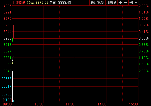 開盤:滬深兩市雙雙低開 滬指跌逾1%失守3900