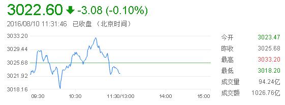 截止午間收盤,滬指報(bào)3022.60點(diǎn),跌0.10%;創(chuàng)業(yè)板跌0.38%。