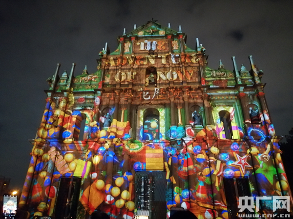 大三巴牌坊舉行光雕表演,吸引眾多游客(央廣記者 佟亞濤 攝)