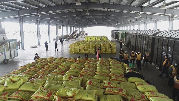在我國(guó)糧食主產(chǎn)區(qū)黑龍江,春耕備耕生產(chǎn)到了關(guān)鍵時(shí)刻,各地春耕物資需求急劇增加。中國(guó)鐵路哈爾濱局集團(tuán)有限公司針對(duì)春耕重點(diǎn)地區(qū)化肥集中到達(dá),組織各相關(guān)車站及時(shí)開辟春耕物資“綠色通道”,確保春耕物資第一時(shí)間運(yùn)抵農(nóng)田。2月以來(lái),中國(guó)鐵路哈爾濱局集團(tuán)有限公司累計(jì)搶卸化肥超過30萬(wàn)噸。佳木斯車務(wù)段寶泉嶺站站長(zhǎng)周磊介紹:“2月15日以來(lái),我們車站最多的一天到達(dá)83輛,站內(nèi)化肥待卸車多達(dá)107車。由于裝卸公司裝卸勞動(dòng)力不足,化肥一旦形成積壓,會(huì)影響農(nóng)民春耕生產(chǎn)。因此,我們協(xié)調(diào)地方政府,組織企業(yè),增加人力、機(jī)具、車輛,確;饰镔Y及時(shí)卸運(yùn)交付到位。”