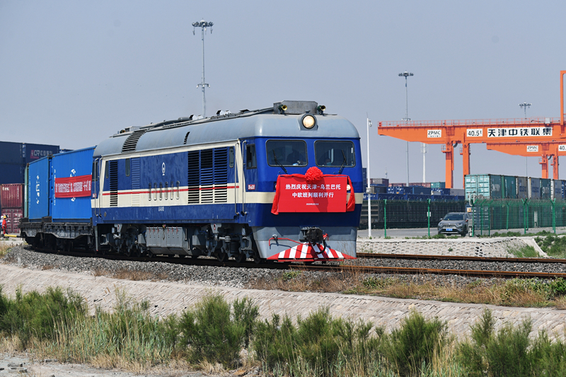 圖為5月20日X9202次中歐班列(天津—烏蘭巴托)發(fā)往蒙古國(guó)。這是天津自貿(mào)區(qū)首次開(kāi)行鐵水聯(lián)運(yùn)中歐班列。(央廣網(wǎng)發(fā) 中鐵北京局供圖)