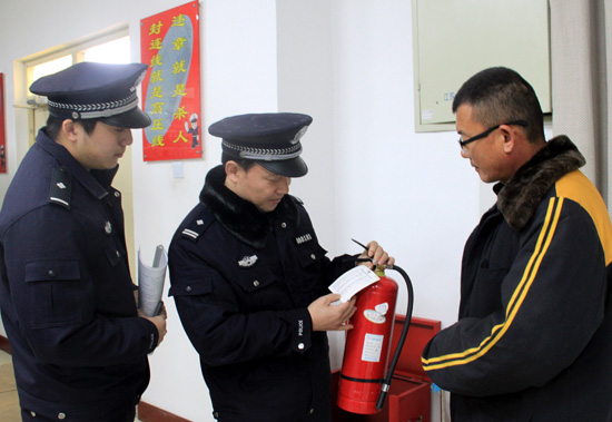 東?h車站派出所民警正在檢查站區(qū)消防器材性能