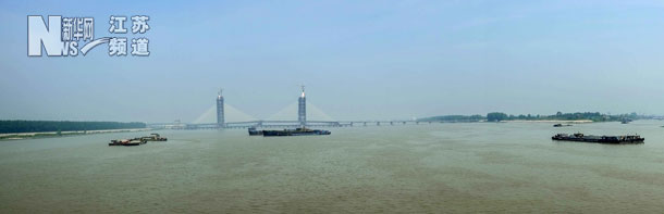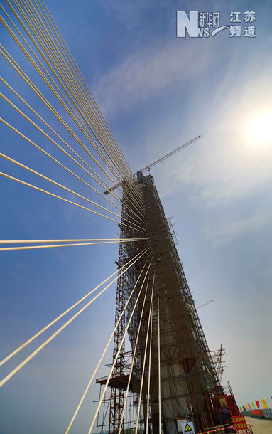 這是5月20日拍攝的85米高的如皋長(zhǎng)江大橋主塔。