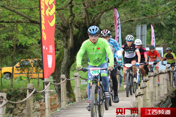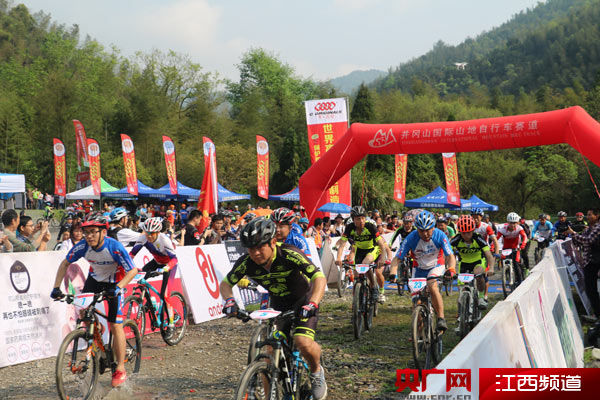 上午9時30分,隨著一聲發(fā)令槍響,比賽正式拉開序幕,參賽選手們迅速騎離起點,如箭一般向遠方射去……選手們騎著單車,穿越木橋,翻越山地,路經(jīng)竹林,涉水過河,體驗著速度與激情;賽道兩側(cè),人頭攢動,喝彩不斷。此次活動不僅吸引了旅游戶外達人、攝影愛好者及新聞媒體的關(guān)注,也吸引了大量游客和井岡山市民前來觀看。
