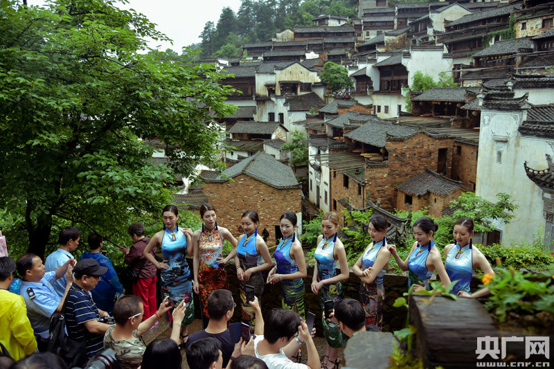 一場(chǎng)快閃以流動(dòng)的旋律、瀟灑的畫意,展現(xiàn)女子典雅賢淑的氣質(zhì)和篁嶺靚麗綽約的風(fēng)采,讓風(fēng)光旗袍與秀美鄉(xiāng)村完美融合。這場(chǎng)“旗袍秀”也展示著中國(guó)傳統(tǒng)服飾與這古老徽州村落文化巧妙融合的無(wú)限魅力。