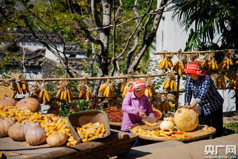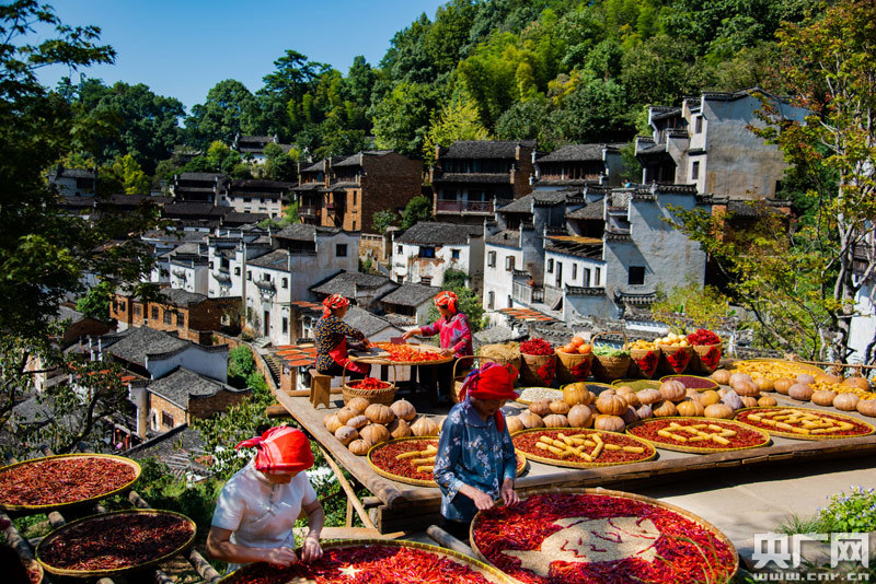 又是一年豐收季,碩果滿枝、風(fēng)吹稻浪,此時(shí)的篁嶺也是家家戶戶曬秋忙。獨(dú)具特色的曬秋景觀在篁嶺青瓦白墻的襯托下,愈發(fā)顯得五彩斑斕,呈現(xiàn)出一幅立體的曬秋農(nóng)俗畫卷,演繹著大地豐收的樂章。