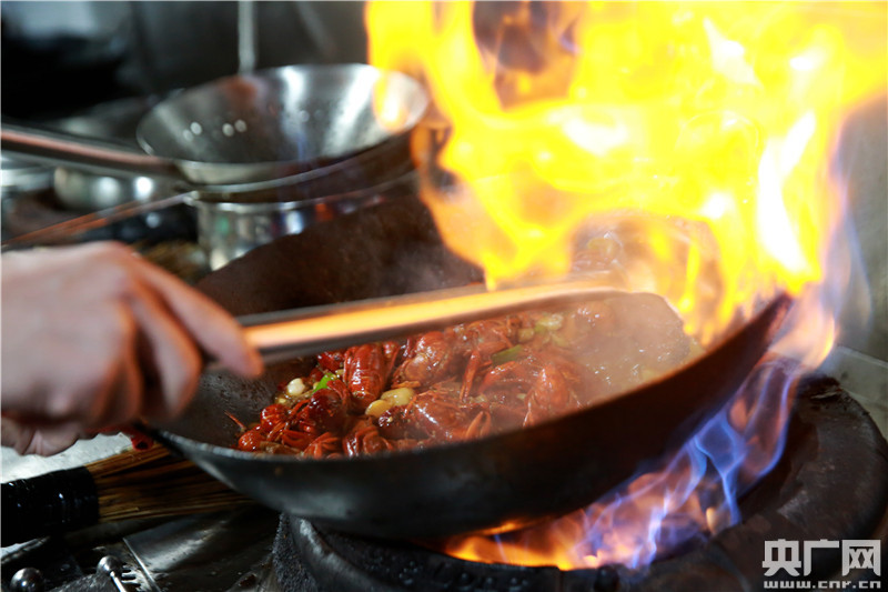 廚師精心烹調(diào)小龍蝦