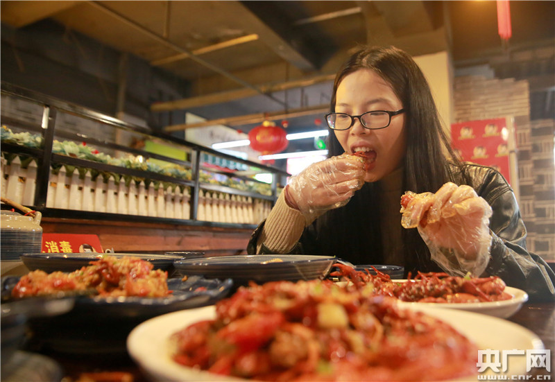 食客正在品嘗美味小龍蝦