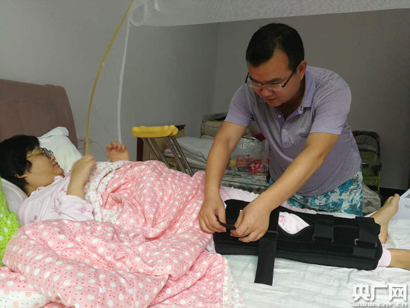 趙曉斌給妻子膝蓋部位按摩