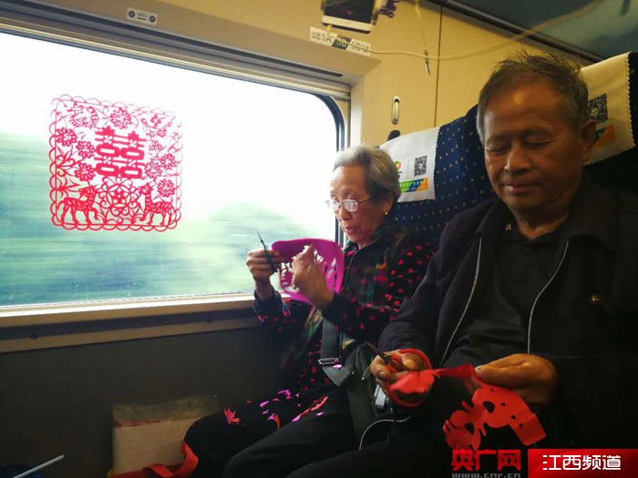 瑞昌剪紙藝術(shù)家在武九高鐵上表演剪紙