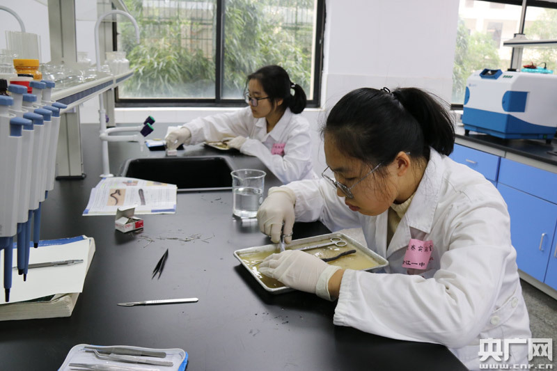 生物興趣小組開展蚯蚓解剖實(shí)驗(yàn)(央廣網(wǎng)發(fā) 于子敬攝)
