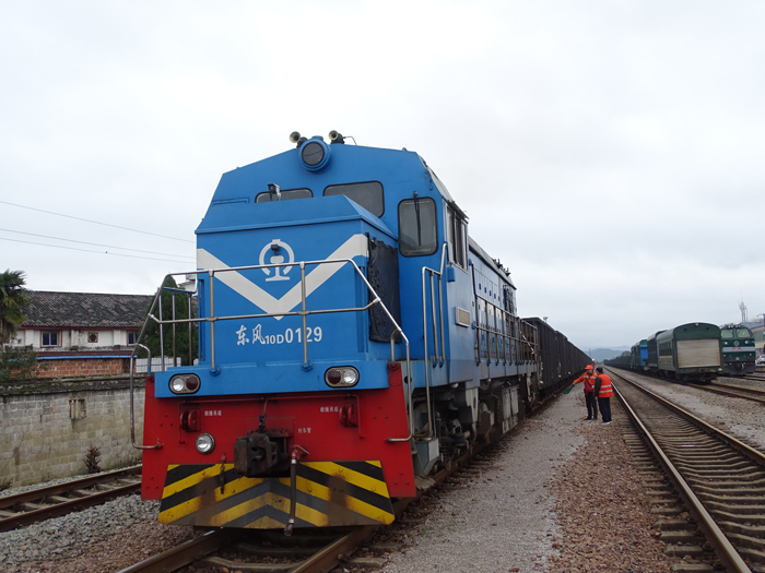 黃金埠電廠調(diào)機(jī)將整列電媒從畫(huà)橋站運(yùn)往廠專(zhuān)線 央廣網(wǎng)發(fā) 黃定坤攝