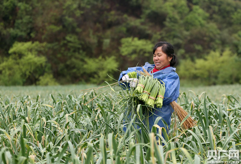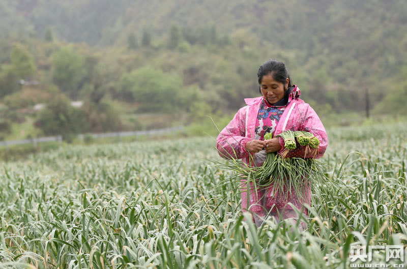 3月31日,江西省吉安市吉水縣螺田鎮(zhèn)大坵灣村,蒙蒙細雨中,一片豐收的歡聲笑語,村民們正在蒜田中收獲蒜苔。