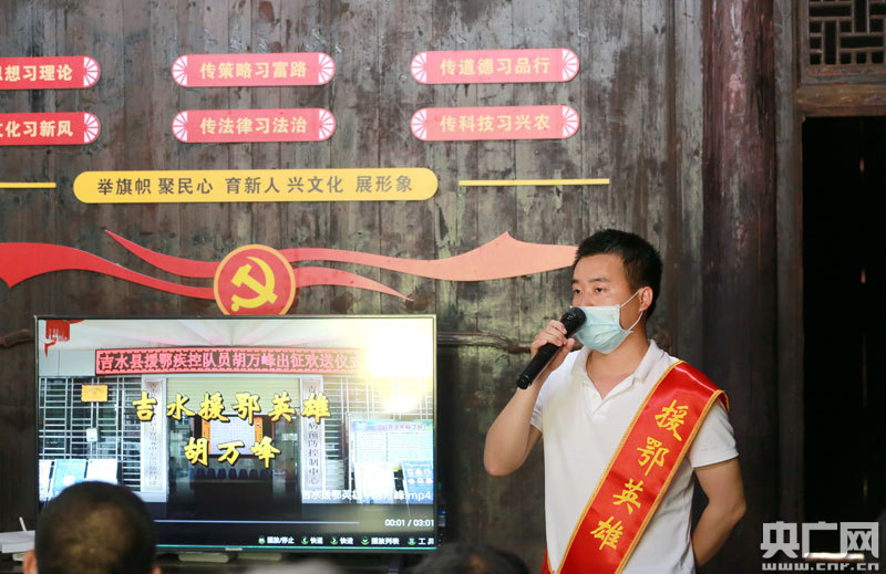 吉水首個援鄂抗疫英雄胡萬峰講述自己親身經(jīng)歷的武漢抗疫故事(央廣網(wǎng)發(fā) 通訊員廖敏 攝)