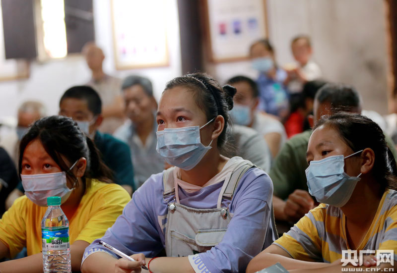 村中的孩子們在聆聽胡萬峰講述武漢抗疫故事(央廣網(wǎng)發(fā) 通訊員廖敏 攝)