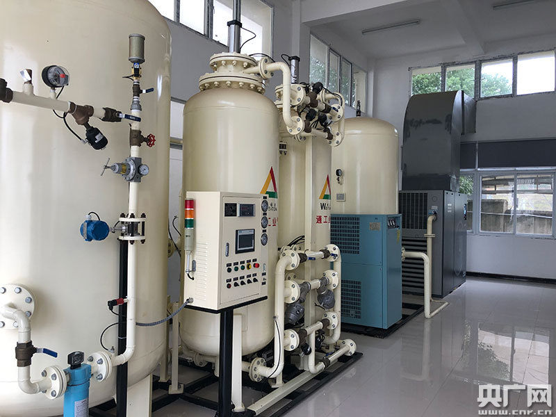 氮?dú)鈿庹{(diào)裝置,根據(jù)糧堆中害蟲種類及數(shù)量,結(jié)合糧溫與倉(cāng)房氣密性情況,開啟制氮機(jī)等相關(guān)設(shè)備,從而達(dá)到殺蟲、抑霉、綠色保質(zhì)儲(chǔ)藏的目的(央廣網(wǎng)發(fā) 記者胡斐 攝)